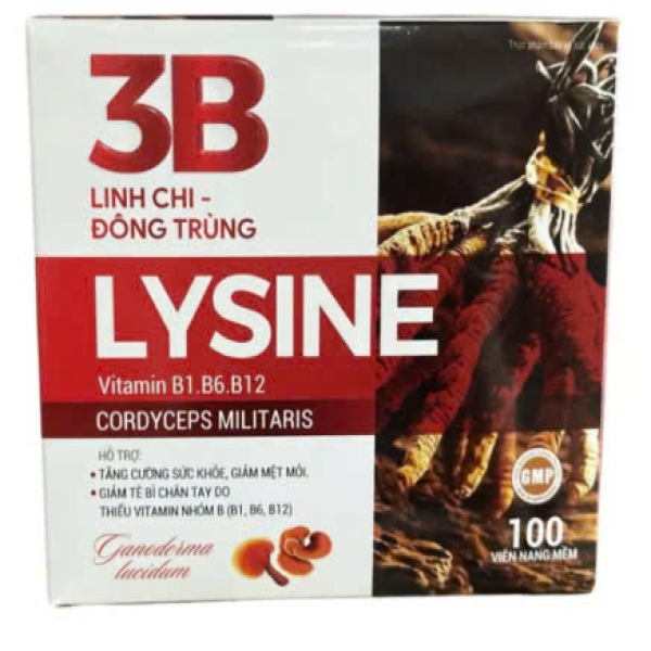 3B Lysine, Linh Chi Đông Trùng Hộp 100 Viên (B1,B6,B12) Nang Mềm , Akofa - 3B Lysine Đông Trùng Trắng